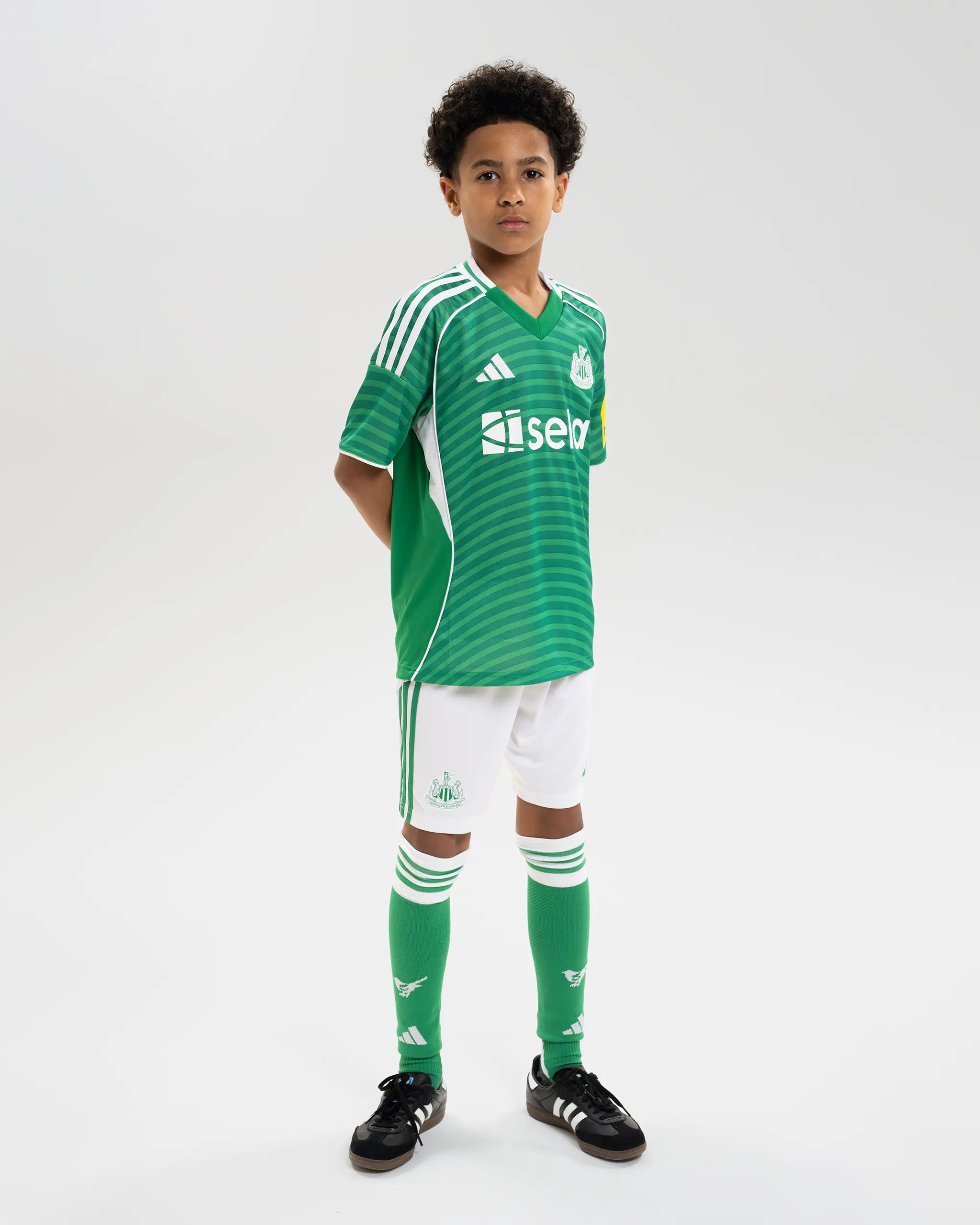 Paying tribute to the city we all call home, the Newcastle United adidas Kids' 25/26 Away Shirt draws inspiration from Newcastle's iconic riverside. Featuring a striking green arch inspired by the legendary Tyne Bridge, it symbolises the enduring connection between our players and our youngest fans - no matter how far away from home that we play.