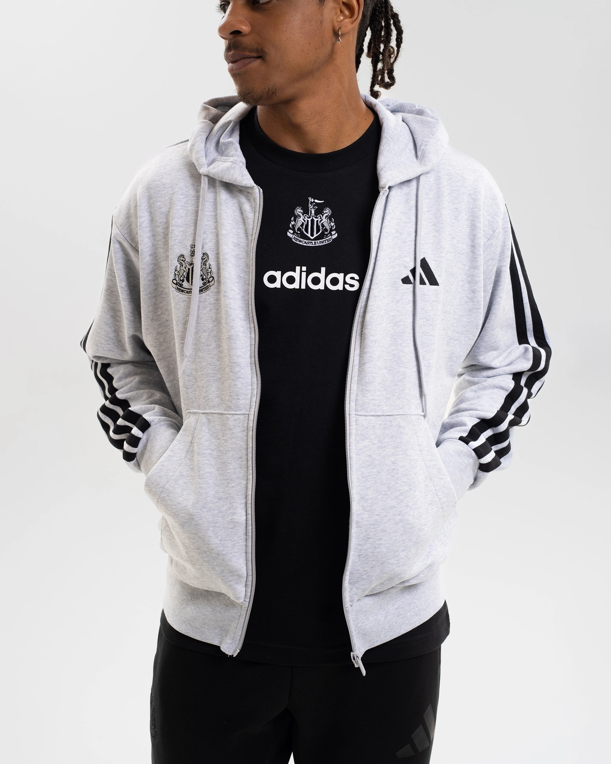 Newcastle United adidas Men's 3-Stripe Light Grey Full Zip Hoodie