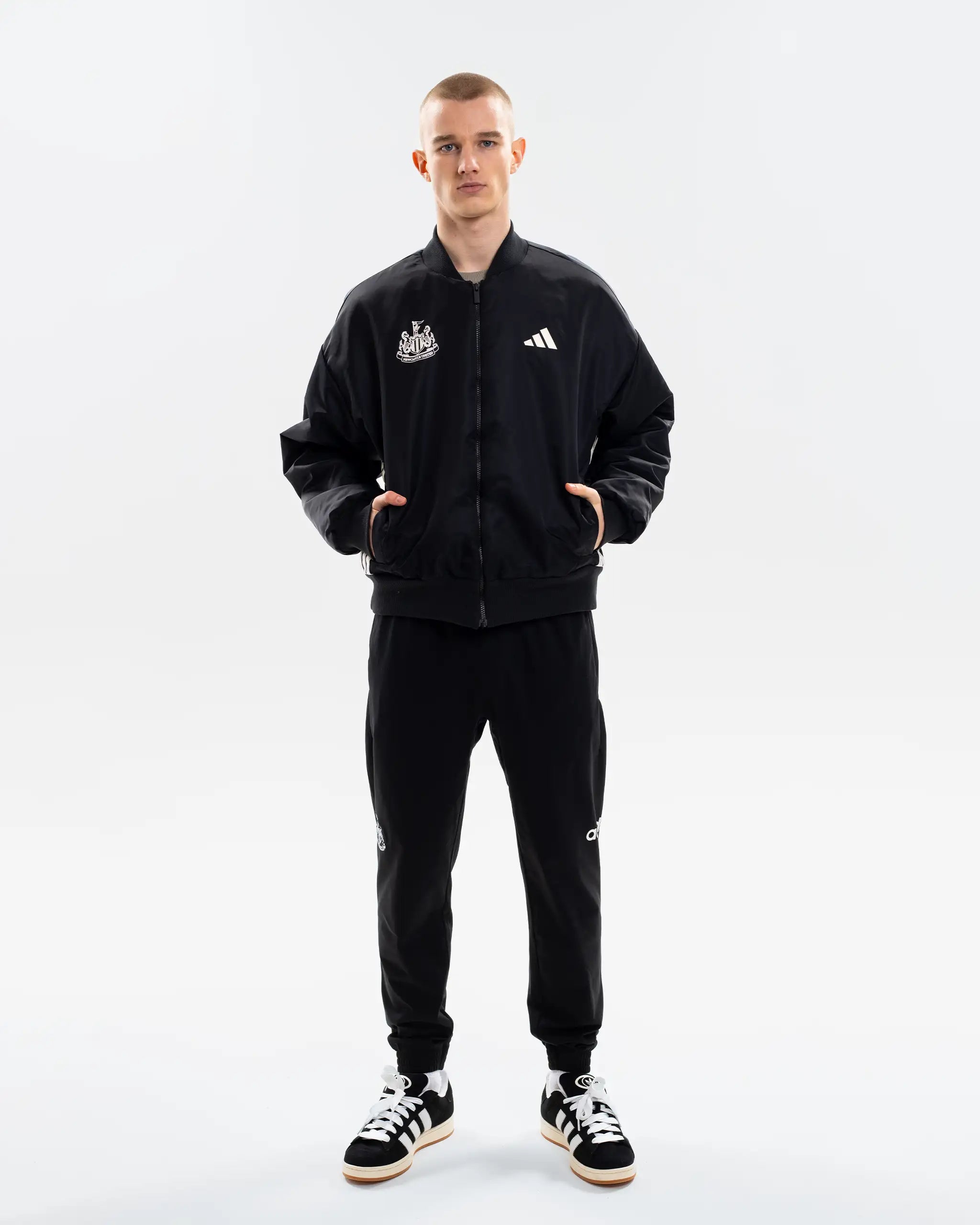 Classic style meets club pride with the Newcastle United adidas Men's Black Bomber Jacket. Featuring adidas’ signature 3-Stripes down the sides, this zip-up design is finished with the adidas logo and NUFC crest on the chest. A sleek, sporty layer perfect for matchdays or everyday wear.