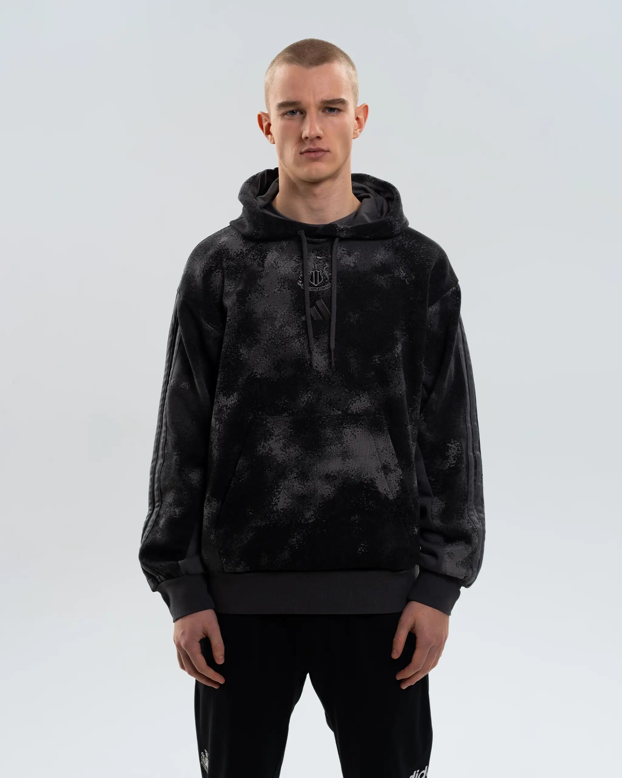 The Newcastle United adidas Men's Grey Multi 3-Stripe Hoodie offers a fresh take on classic comfort. Featuring a unique grey patterned finish and bold black 3-stripes down each arm, this hoodie brings standout style to your everyday wardrobe. With the adidas logo and embroidered Newcastle United crest on the chest, it’s the perfect way to stay cosy while showing your Magpies pride wherever you go.