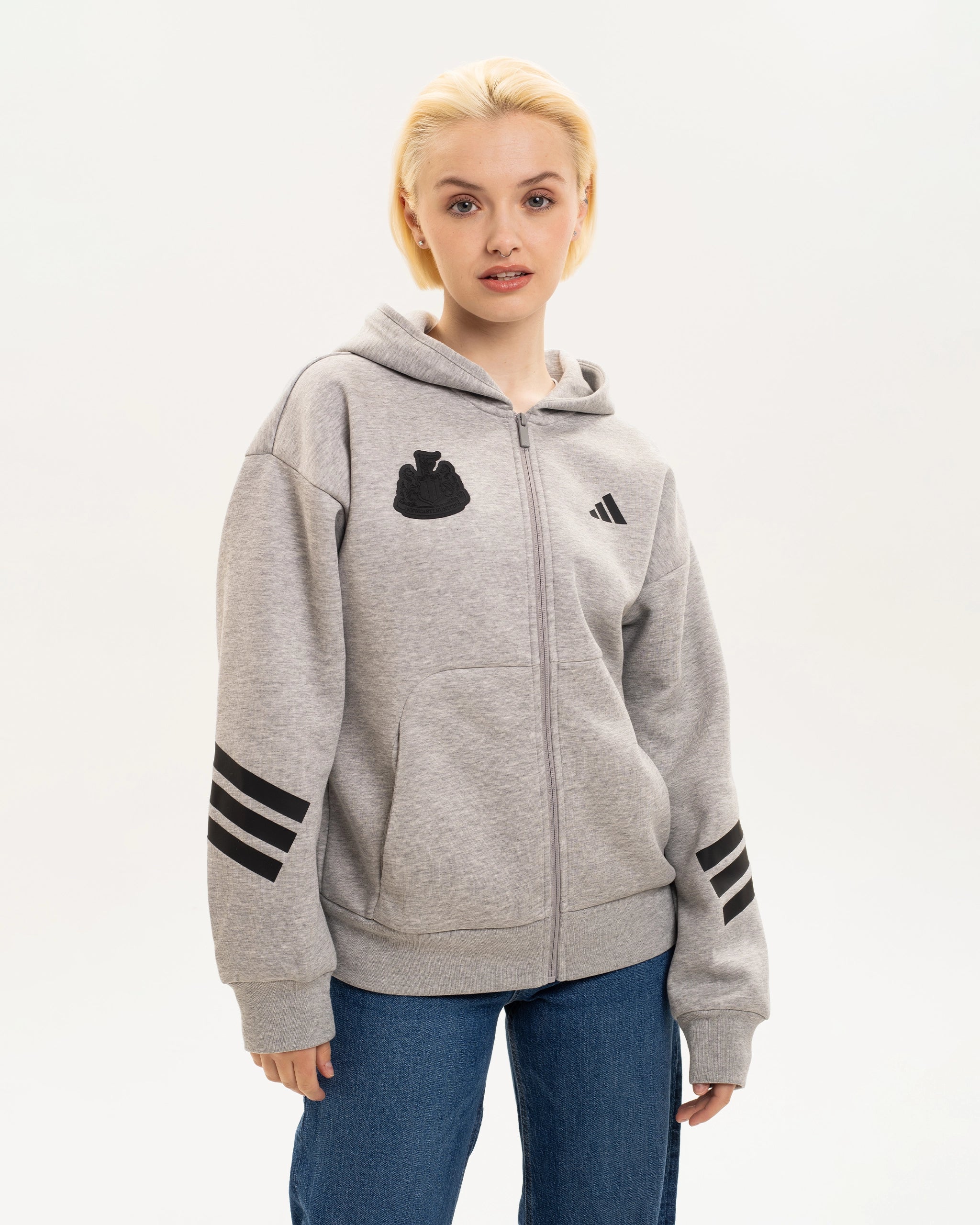 Newcastle United adidas Women's 3-Stripe Grey Full Zip Hoodie