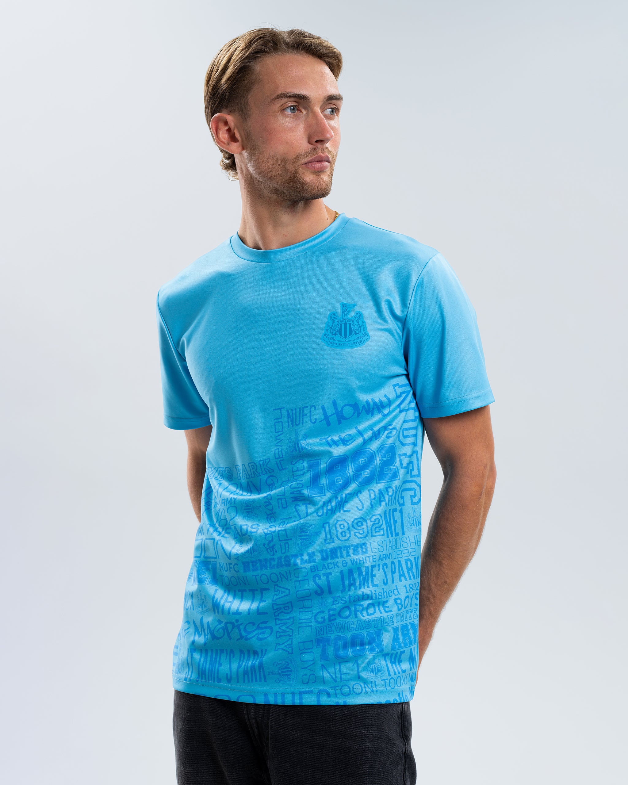 Make a bold statement with the Newcastle United Blue Graphic Slogan T-Shirt. Featuring the NUFC crest on the chest and an abstract design made up of words that celebrate the Toon Army, this tee blends style and supporter pride effortlessly. Perfect for fans who want to stand out while showing their love for the Magpies.