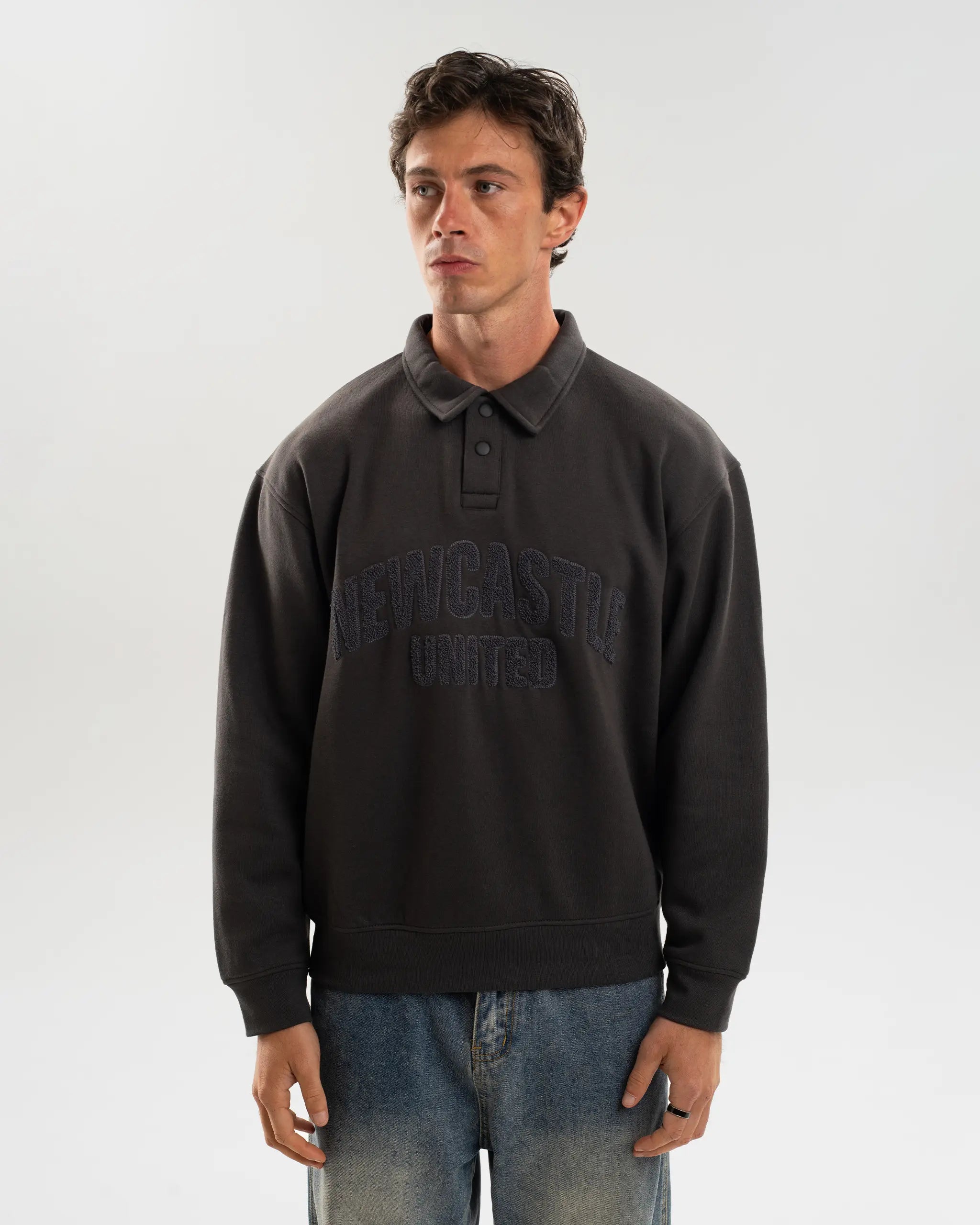Elevate your match day style with the Newcastle United Tonal Rugby Top, designed with a classic collared neckline and button placket. The deep tonal palette offers a sleek, versatile look, while the embroidered "Newcastle United" chest detail adds a subtle yet powerful nod to your club loyalty.